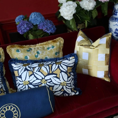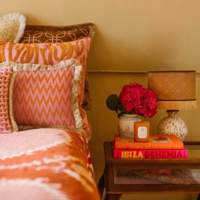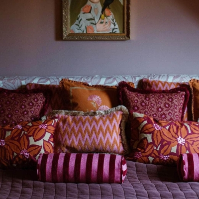 Double Sided Cushion Janis Bordeaux & Pink x Mako Caramel & Ecru