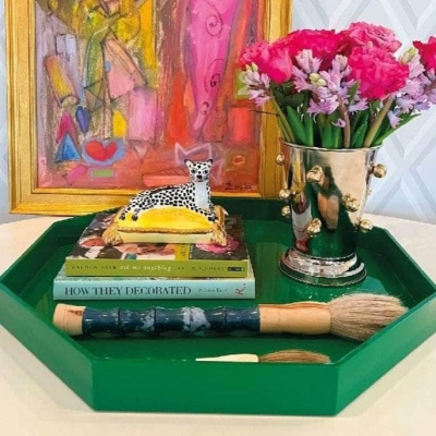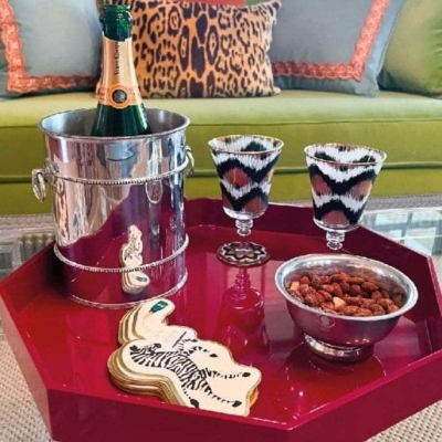 Myanmar's Majesty Rattan Serving Tray - Pink