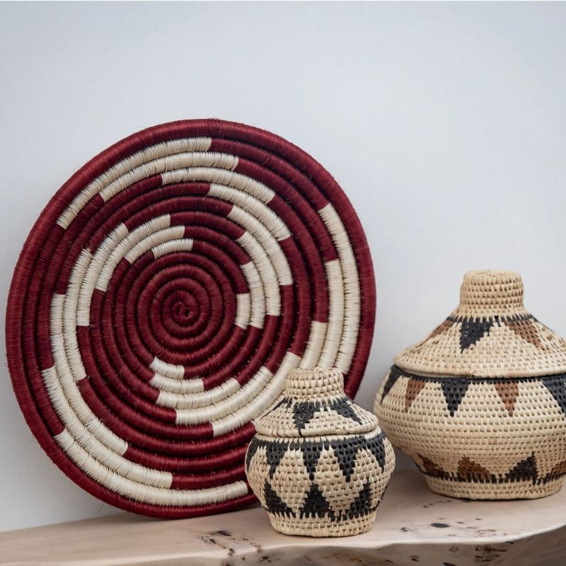 This decorative Guacamayas basket is handwoven by members of a cooperative in Boyacá, Colombia.